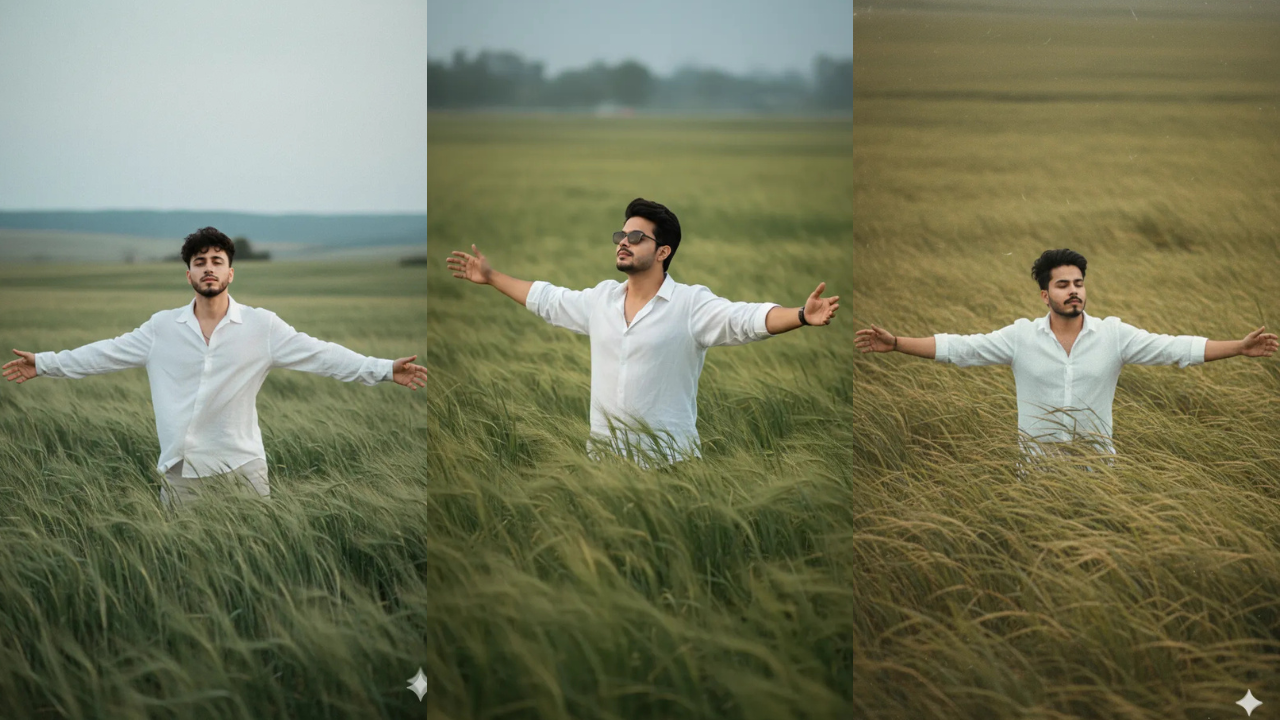 This look is perfect for Instagram DPs, reels covers, YouTube thumbnails, and even professional profile pictures. The lighting usually stays soft on the face while the background gets a stylish green blur. The result looks like it was clicked in a professional outdoor location.